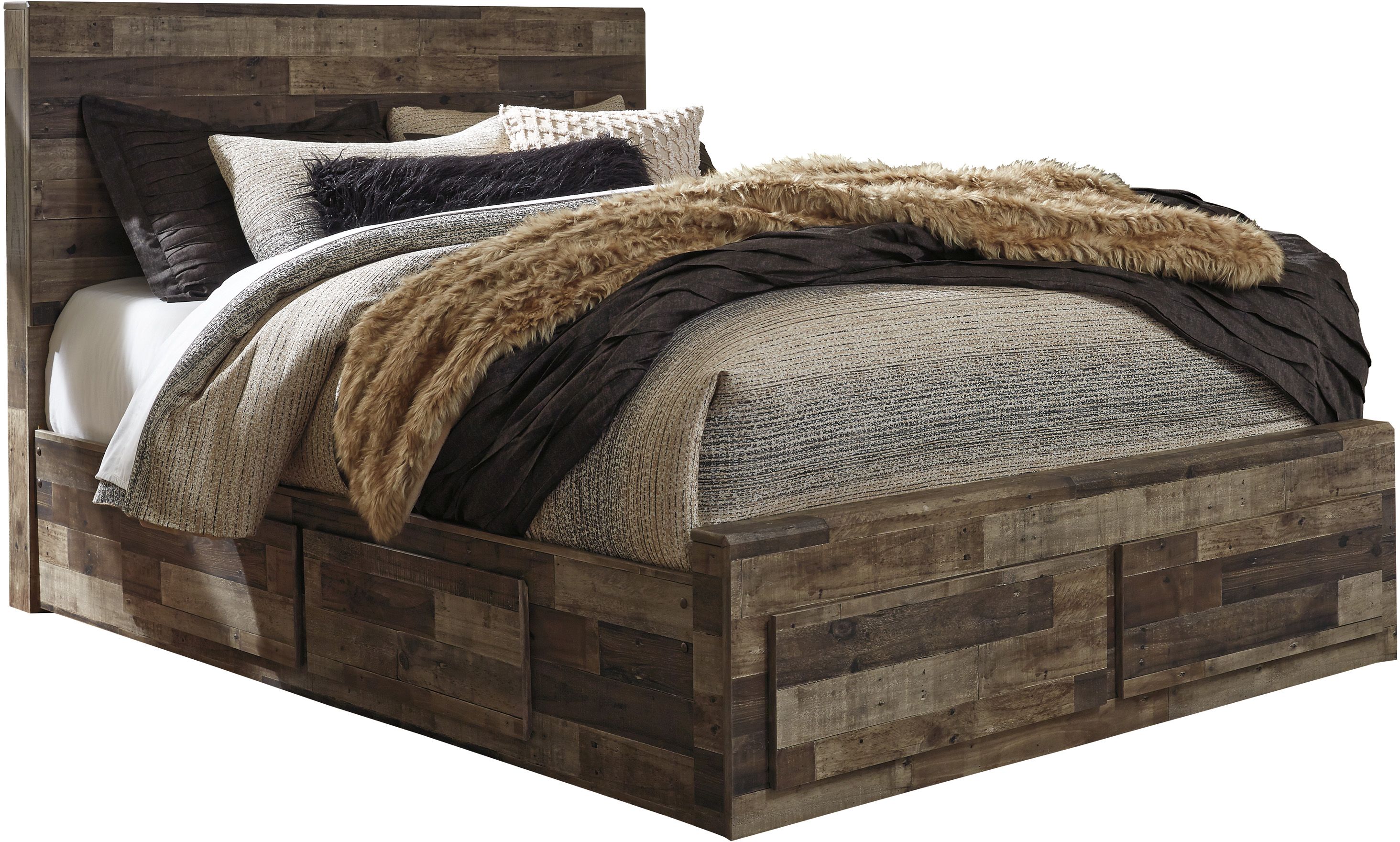 Rustic butcher block finish over replicated pine grain with authentic touch. Cases feature a framed front and pilasters. Bed features a thick and heavy design. Contemporary handles in an antiqued gunmetal finish. Side roller glides for smooth operating drawers. Drawer interiors finished with a replicated linen design. Slim USB charger located on the back of the night stand tops. Queen (57) and king (58) headboards can attach to a bolt-on metal bed frame B100-31 or B100-66 respectively. Twin (53) and full (87) headboards can attach to a bolt-on metal bed frame B100-21. All storage footboards (52S,54S,56S,84S) require the B100-11, B100-12, B100-13 or B100-14 roll slats. Rolling trundle storage box enables the option of storage or bed. Side roller glides for smooth operating drawers. All headboards (57,58,65,69,85,63) can attach to a bolt-on metal bed frame B100-21, B100-31 or B100-66 respectively. All headboards (57,58,65,69,85,63) are compatible with all footboard options (52,52S,54,54S,56,56S,84,84S). LED lights accent bookcase headboards (65,69,85,63). Drawer interiors lined with a replicated linen design for a clean, finished look.