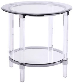 Sophisticated and stylish, the beveled glass top floats atop artistic metal bars punctuating transparent acrylic legs for a truly whimsical feel. Mix 'n match round and square tables to give you the look and fit that's perfect for your living space.Read More