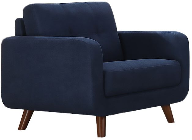 Add contemporary freshness to your living space with the graceful shapes and contrasting colours of the Noma chair. Available in blue and grey, the chair boast linen-like fabric with tufted stitched cushions, maple hardwood flared feet and accent print toss pillows.Read More
