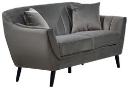 Inspired by mid-century silhouettes, this loveseat has a sleek profile that will keep your room from feeling cluttered. Contemporary channel tufting on a tight back follows the contour to cushioned arms. Upholstered in tailored velvet, this loveseat has matching velvet pillows for that perfect finishing touch.Read More