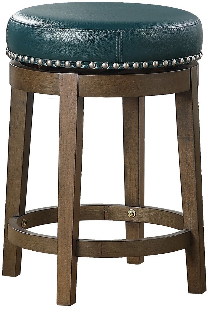Transitional styling paired with versatility of selection makes the Westby Collection a perfect addition to your home’s casual dining spaces. The round, swivel seat, counter height stool is presented at 24-inches. The brown finished wood legs complement the green bi-cast vinyl seat which features nailhead trim that further defines the stool’s round profile.