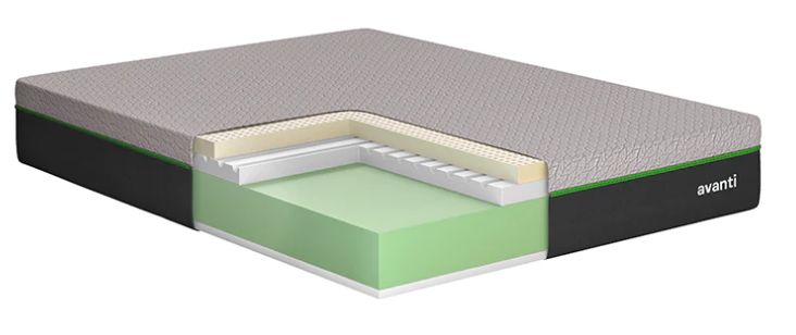Revêtement ayant la technologie ActiveBreeze avec système de contrôle de la chaleur. Latex écologique de 2 pouces. Mousse de soutien avec canaux de ventilation de 2 pouces pour évacuer la chaleur. Mousse de support de 7 pouces. Matelas sans rotation.